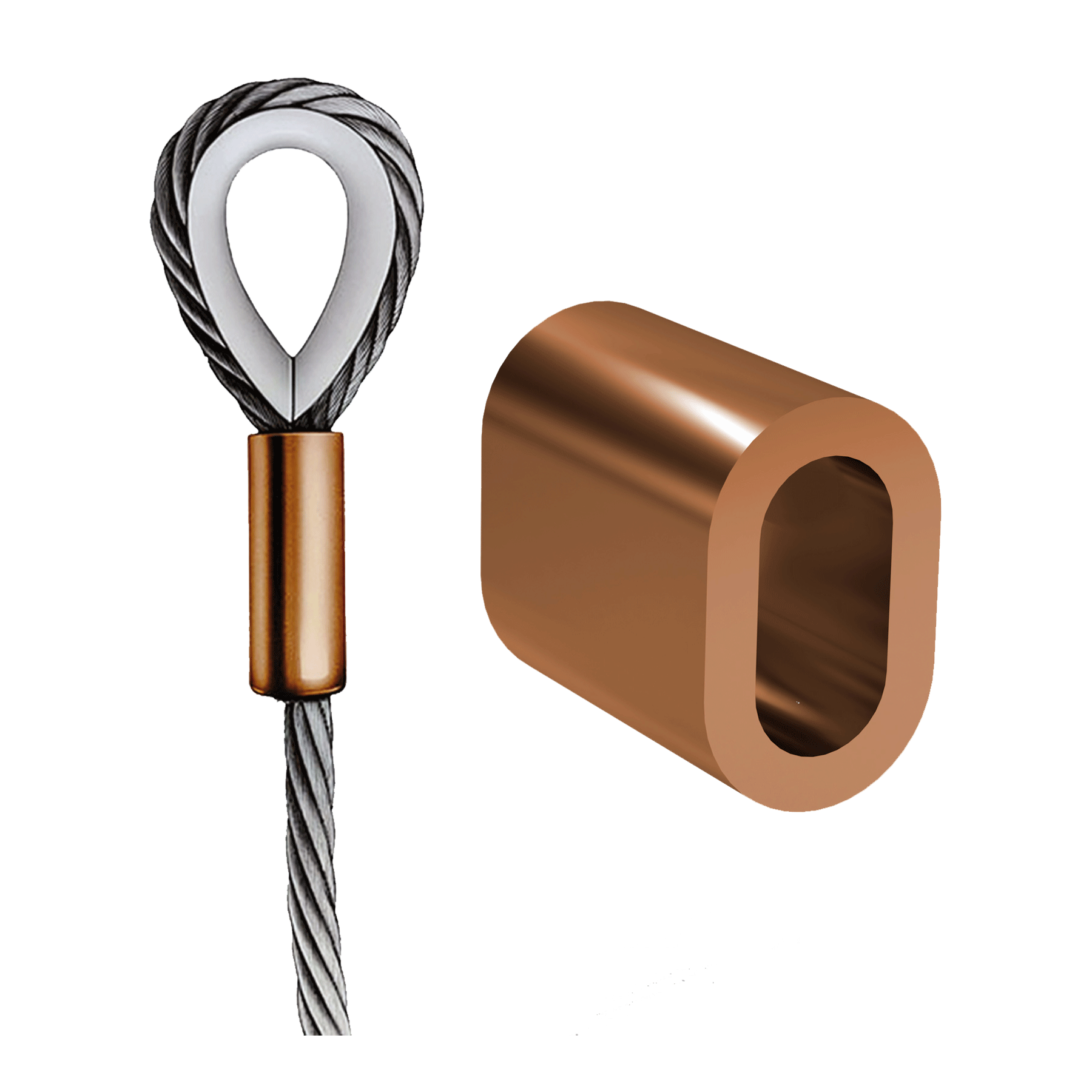 La férula de retorno de cobre TCU ha sido validada de acuerdo con el sistema de empalme Talurit®, que se encuentra dentro del marco de la norma EN 13411-3. Sin embargo, el material de cobre no se menciona en esta norma. El cobre se utiliza junto con cables de acero inoxidable para evitar la corrosión galvánica en un entorno de agua salada. Se pueden usar los mismos troqueles que en las férulas de retorno de aluminio. El material es cobre de alta calidad en estado blando. Las férulas de retorno de cobre TCU se extruyen sin costura sobre un mandril. Una terminación realizada de acuerdo con nuestras instrucciones normalmente soportará una resistencia a la tracción del 90% de la carga mínima de ruptura (MBL) del cable.